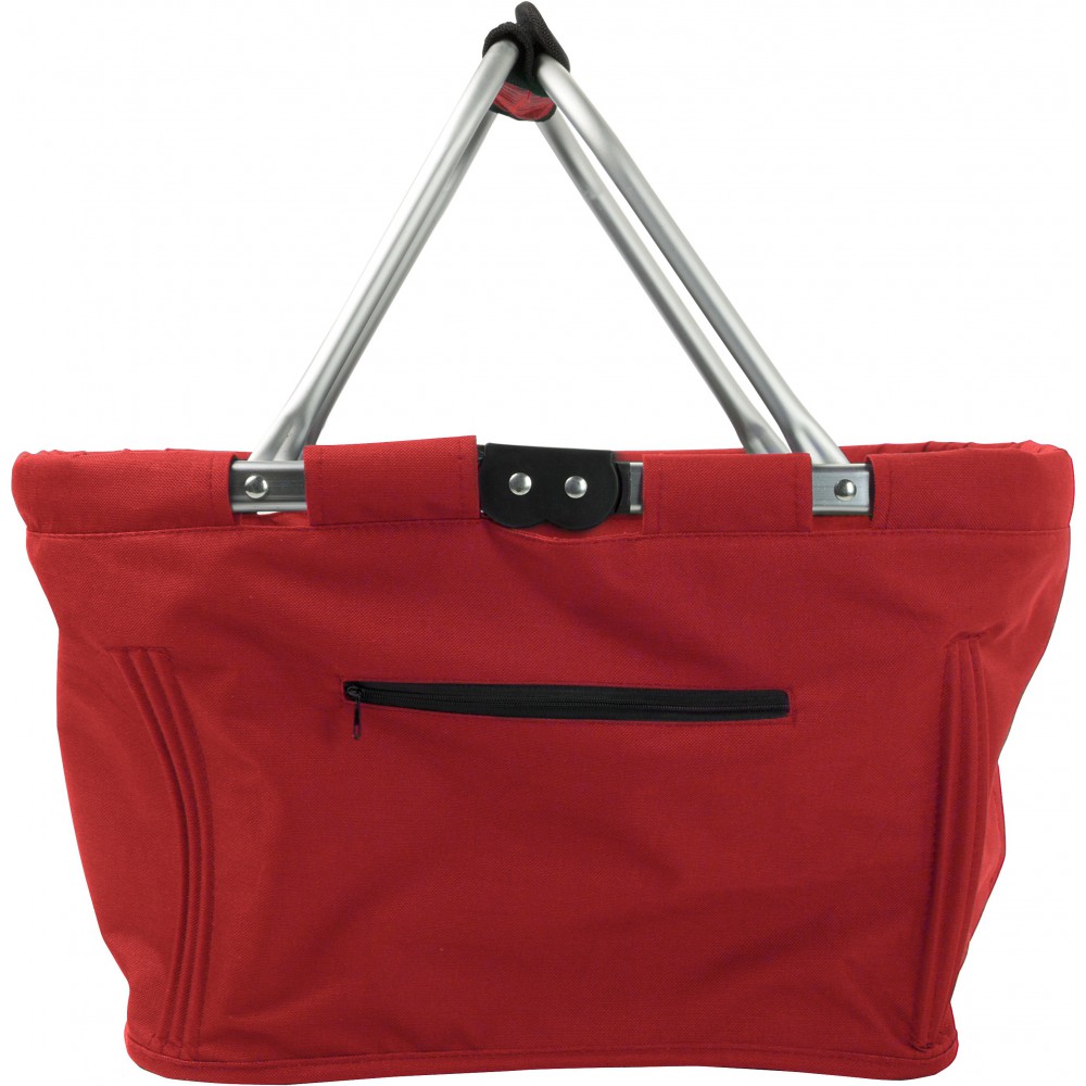 Bevásárlótáska alumínium kerettel, cipzáras oldalzsebbel. 600D poliészter. Emblémázás: Szitanyomás