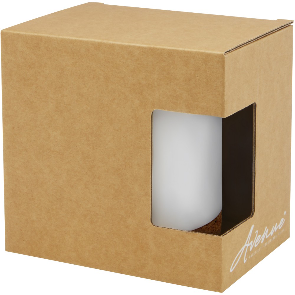 Modern kerámia bögre parafa aljjal, amely természetes megjelenést kölcsönöz. Nem szivárgásmentes. Szénsavas italokkal is használható. Mosogatógépben nem mosható, de mikrohullámú sütőben történő melegítésre alkalmas. Űrtartalom: 425 ml. Újrahasznosított karton díszdobozban. Emblémázás: Bögredekor, Matricázás