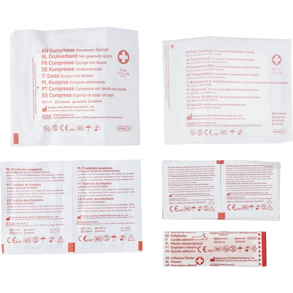 Elsősegély-készlet RPET tartóban, piros