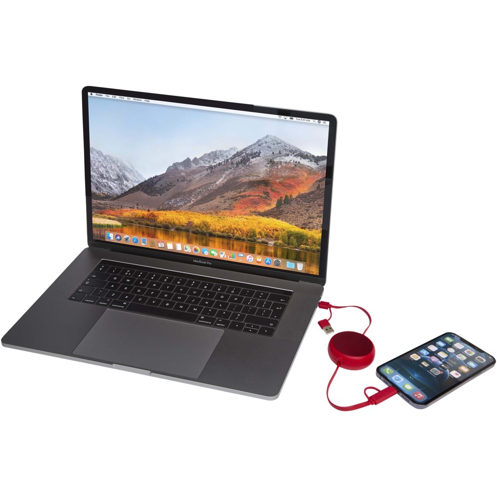 Az Alasia 5 az 1-ben visszahúzható adat- és 45W-os gyorstöltő kábel újrahasznosított műanyagból készült, tartós és stílusos újrahasznosított alumínium elemmel, amely fenntarthatóbb és elegáns töltési megoldást kínál. A kábel USB-A és Type-C bemeneti csatlakozókat, valamint egy 3 az 1-ben Type-C és Lightning/Micro USB kombinált kimeneti csatlakozót tartalmaz. Az USB-C?USB-C kapcsolat maximális teljesítménye 45W, az USB-A?USB-C kapcsolaté 24W, míg az összes többi kapcsolat maximális teljesítménye 15W. Kompatibilis a CarPlay és az Android Auto rendszerekkel, és beépített telefontartóval is rendelkezik a további kényelem érdekében. Akár otthon, az irodában vagy útközben használod, az Alasia kábel teljesítményt és stílust garantál. Kábel hossza: 100 cm. Emblémázás: Gravírozás, Tamponnyomás