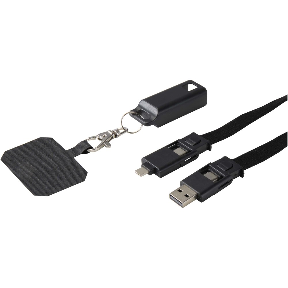 A Franz okostelefon nyakpánt újrahasznosított műanyagból készült, és beépített, 65W teljesítményű 5 az 1-ben töltőkábellel rendelkezik, amely Type-C és USB-A bemeneti, valamint Type-C, Lightning és microUSB kimeneti csatlakozókat kínál. Ez a kábel elég erős ahhoz, hogy a legtöbb laptopot, tabletet és okostelefont gyorsan feltöltse. Kompatibilis a CarPlay és Android Auto rendszerekkel, így ideális utazáshoz, munkához vagy mindennapi használatra. Emblémázás: Szitanyomás, Tamponnyomás
