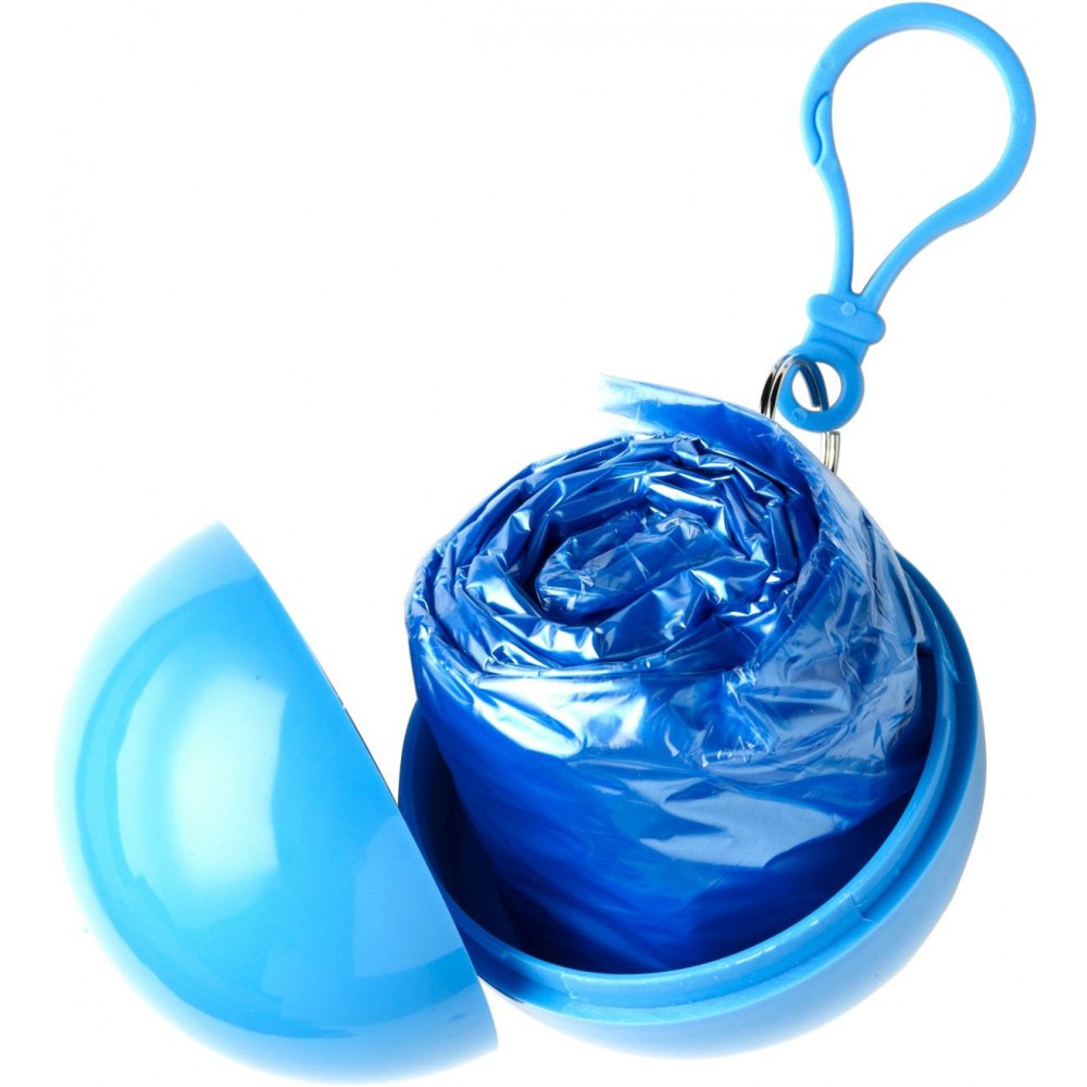 Poncsó szabású esőkabát gömb tokban. Áttetsző, vékony PVC. Emblémázásra csak a tok alkalmas. Tok mérete: d: 6 cm. Az esőkabát mérete: 90 x 120 cm. Emblémázás: Tamponnyomás