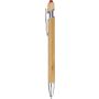 Bambusz golyóstoll krómozott fém részletekkel. Krómozott műanyag tollheggyel és fém klipsszel. Színes érintő a nyomógombon. Kb. 800 méter íráshossz. Kék tollbetéttel. Emblémázás: Tamponnyomás, UV nyomtatás