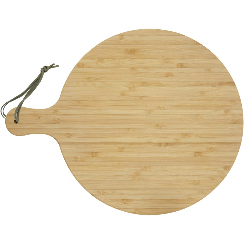A Delys vágódeszka bambuszból készült, ideális a fenntartható választást preferáló cégek számára. A deszka átmérője: 30,5 cm. Fogó hossza: 8 cm. Deszka vastagsága: 1,4 cm. Mikrohullámú sütőbe vagy mosogatógépbe tenni nem alkalmas. Emblémázás: Gravírozás