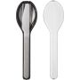Ez az elegáns és praktikus Ellipse evőeszközkészlet egy kést, egy villát és egy kanalat tartalmaz, mindegyik rozsdamentes acélból készült. Az evőeszközök egy kompakt műanyag tartóban vannak. Mosogatógépben mosogatható. Emblémázás: Gravírozás, Tamponnyomás