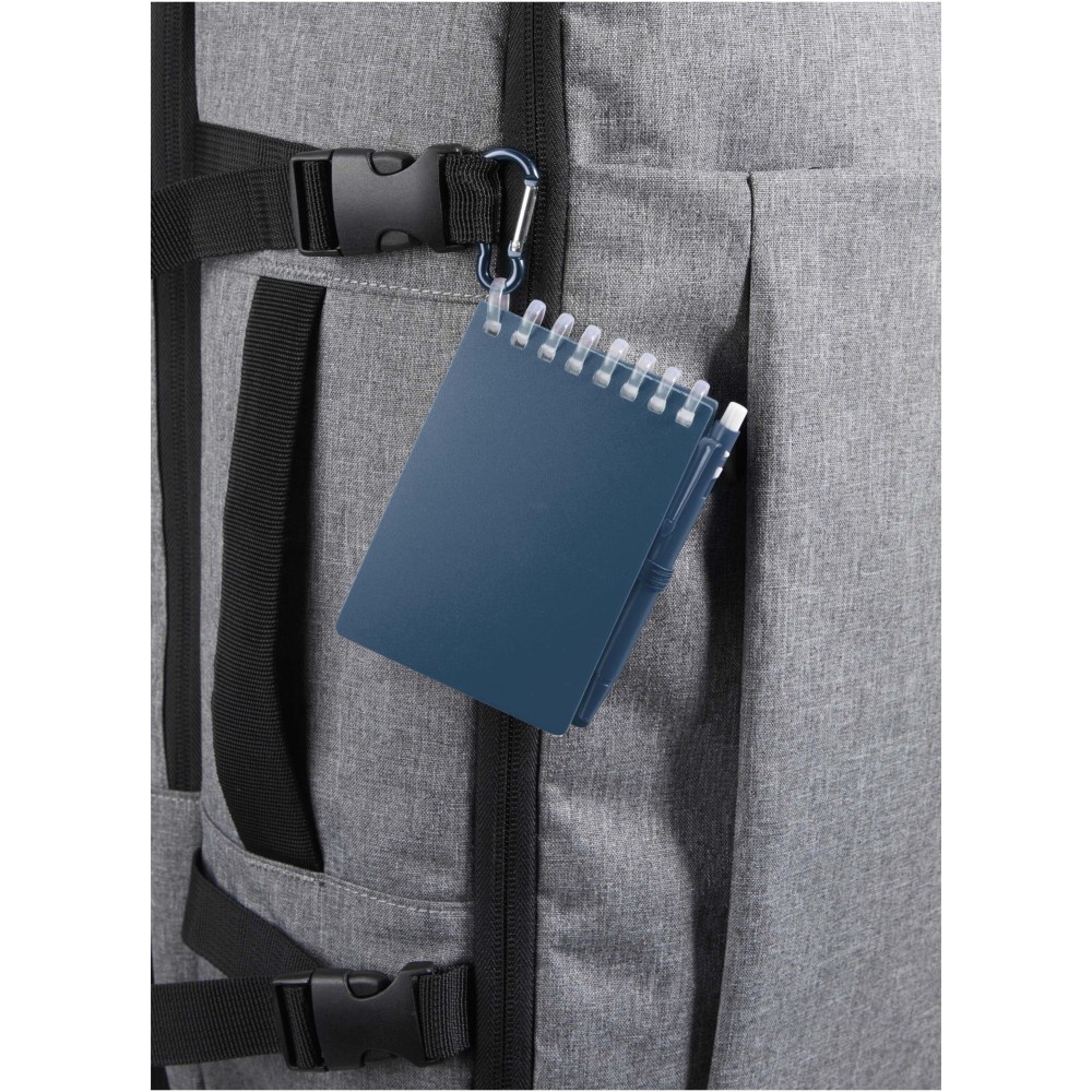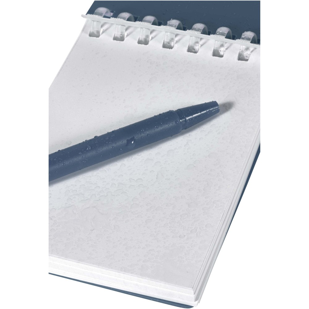 A Lig Mini jegyzetfüzet és toll szett kompakt és praktikus társ a gyors jegyzeteléshez útközben. A spirálfüzet puha, újrahasznosított műanyag borítással és 70 darab, 120 g/m2 súlyú, vízálló kőpapírból készült üres lappal rendelkezik, így ideális választás szabadtéri használatra is. A kerekített sarkokkal és beépített tolltartó pánttal ellátott kiegészítő tökéletesen követi a "mini" trendet, miközben teljesen funkcionális marad. A szetthez tartozó golyóstoll újrahasznosított ABS műanyagból készült, fekete tintával ír, íráshossza pedig 250 méter. A színben harmonizáló fémgyűrű segítségével a szett könnyen rögzíthető hátizsákra, táskára vagy kulcscsomóra, így tartós és hordozható megoldást nyújt a jegyzetek rögzítéséhez. A jegyzetfüzet mérete: 11 × 7,5 cm. Emblémázás: Szitanyomás