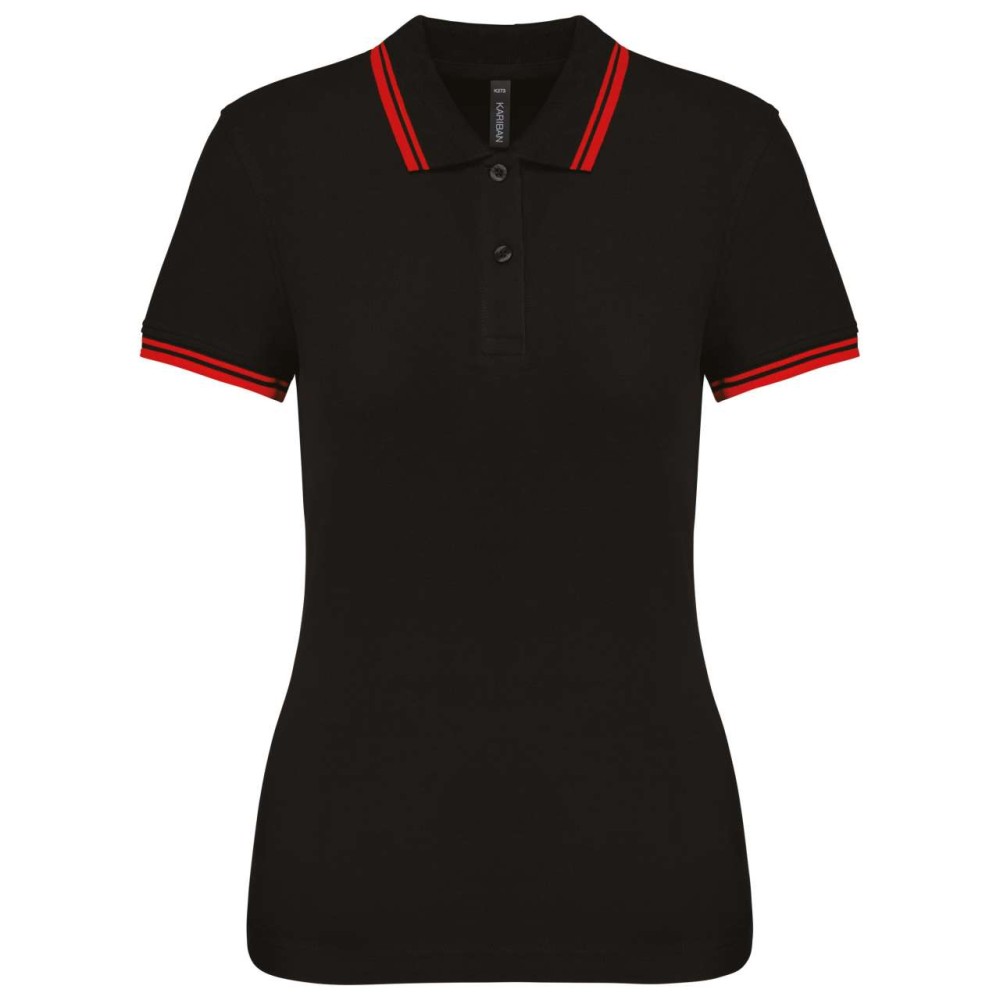 Kariban női rövidujjú galléros póló, Black/Red