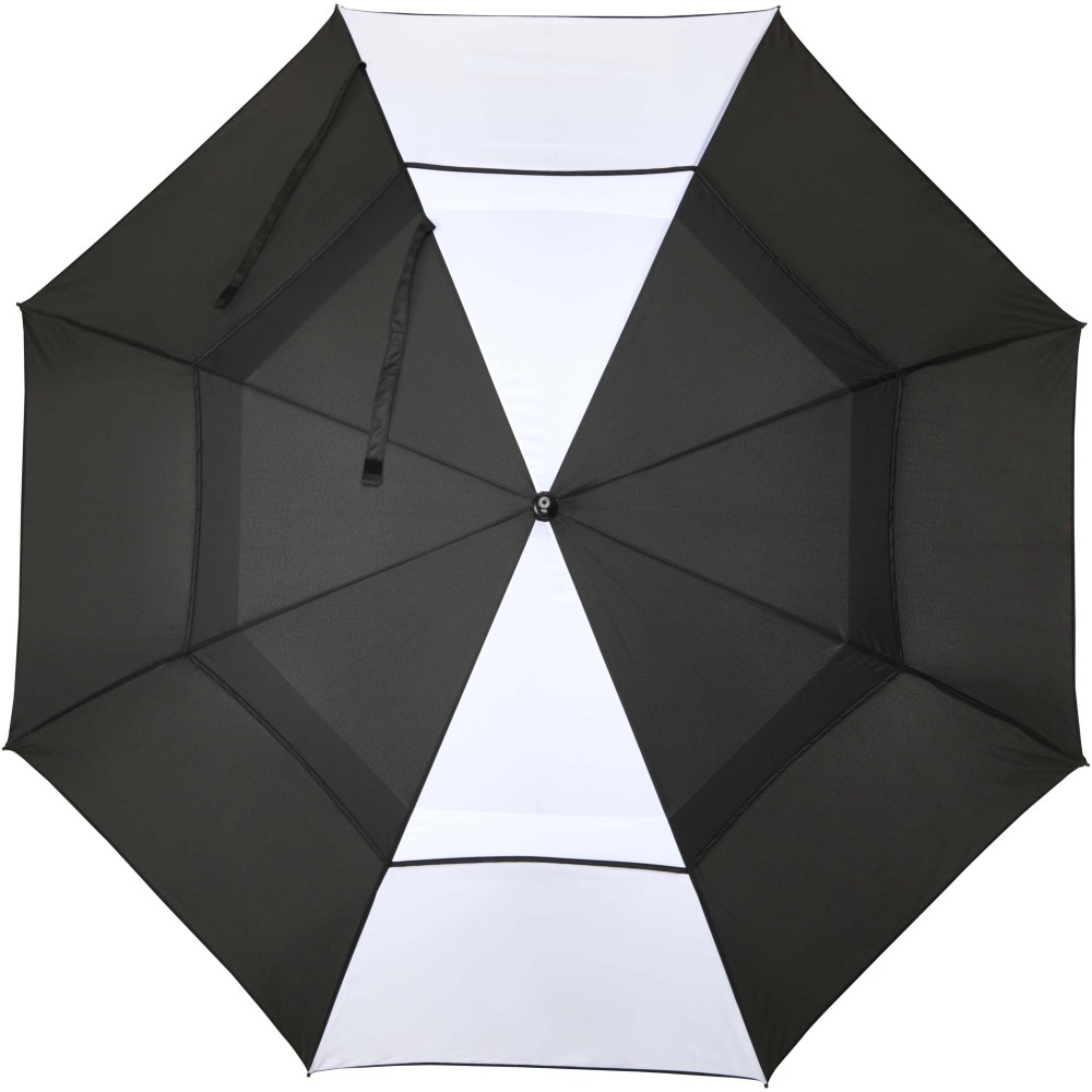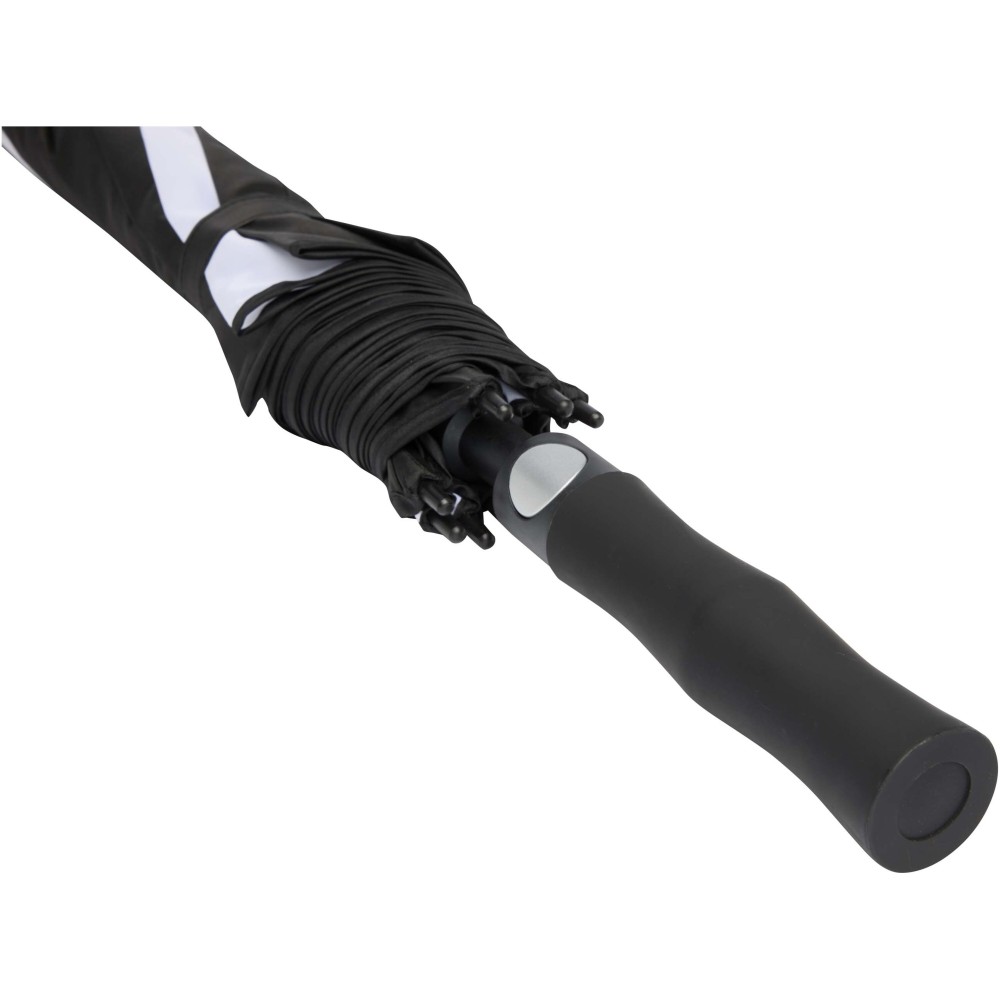 A Jeff szélálló golfesernyő tágas, 55 hüvelykes poliészter ernyőrésszel rendelkezik, amely kényelmesen megvéd több személyt is az időjárástól. Erős üvegszálas szára és váza kiváló rugalmasságot biztosít, így jól ellenáll az erős szélnek. Praktikus műanyag fogantyúja automata nyitógombbal van ellátva, ami gyors és egyszerű használatot tesz lehetővé. Kontrasztos ernyőpaneljei remek lehetőséget kínálnak feltűnő, látványos emblémázásra, így ideális választás rendezvényekhez, promóciókhoz vagy mindennapi használatra. Emblémázás: Szitanyomás