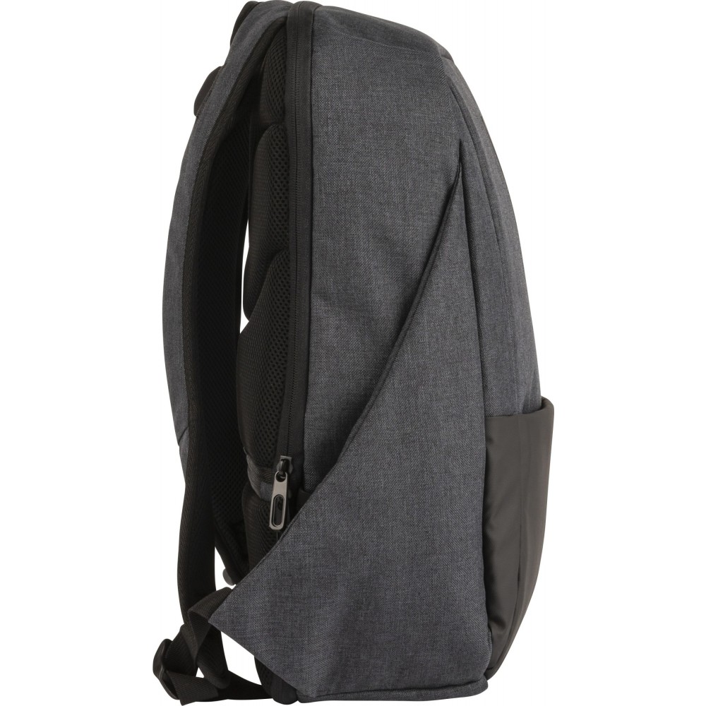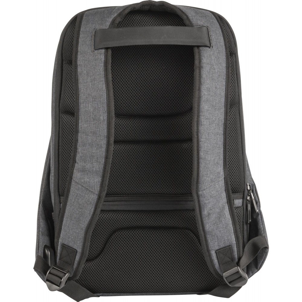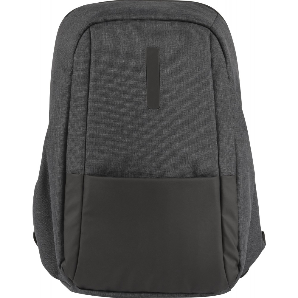 Hátizsák két fő rekesszel, amelyből az egyik laptop tárolására is alkalmas. Hátulján lopásgátló zsebbel és elöl két cipzáras zsebbel rendelkezik. Párnázott, állítható vállpánttal. PVC. Emblémázás: Szitanyomás