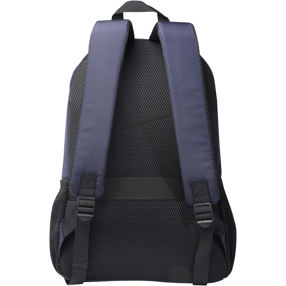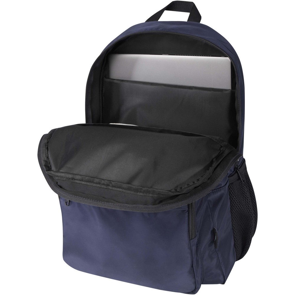 A Trend Plus hátizsák GRS tanúsítvánnyal rendelkező újrahasznosított, puha és gyűrődésálló anyagból készült, minőségi RPET béléssel. A hátizsák 15?-os laptoprekesszel, rendszerező rekesszel, cipzáras elülső zsebekkel, oldalsó rugalmas hálós zsebekkel, valamint légáteresztő hátpárnázattal és bőröndpánttal rendelkezik. Az állítható vállpántok maximális kényelmet biztosítanak. Űrtartalma: 20 liter. Teherbírás: akár 10 kg. PVC-mentes. Emblémázás: Szitanyomás