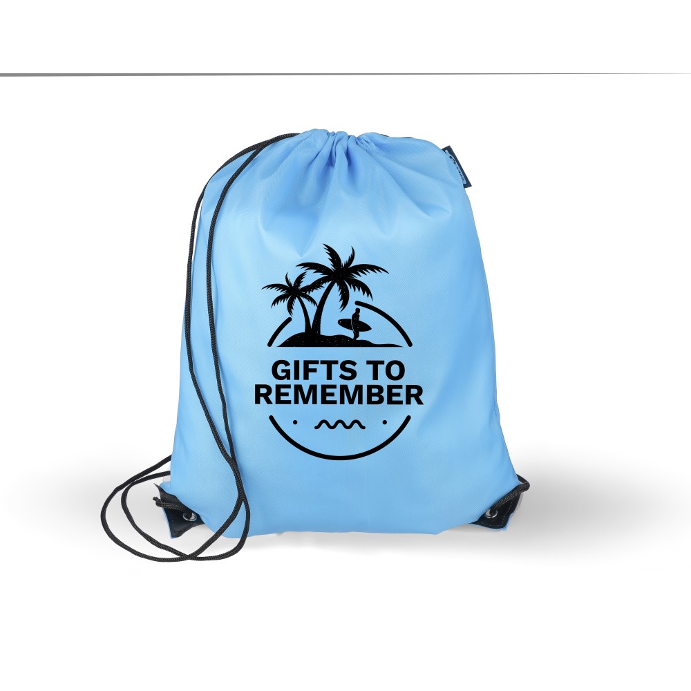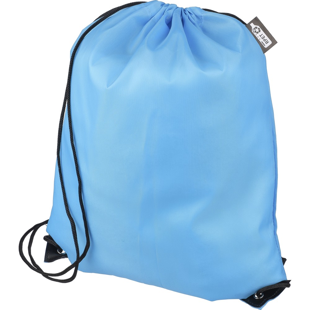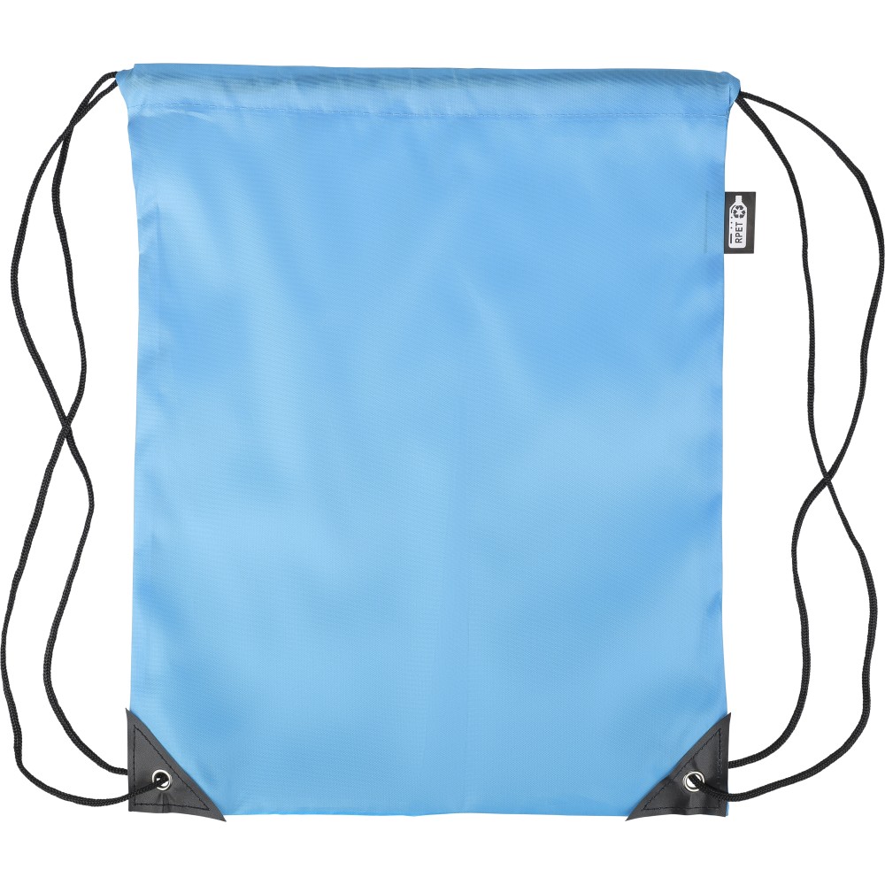Tornazsák 210D poliészter anyagból, fekete PU sarokerősítéssel az elején, és belső varrással. Fekete nylon húzózsinórral, egy rekesszel. Űrtartalom: 5 liter, teherbíró képesség: 7 kg. rPET címkét tartalmaz. Emblémázás: Szitanyomás