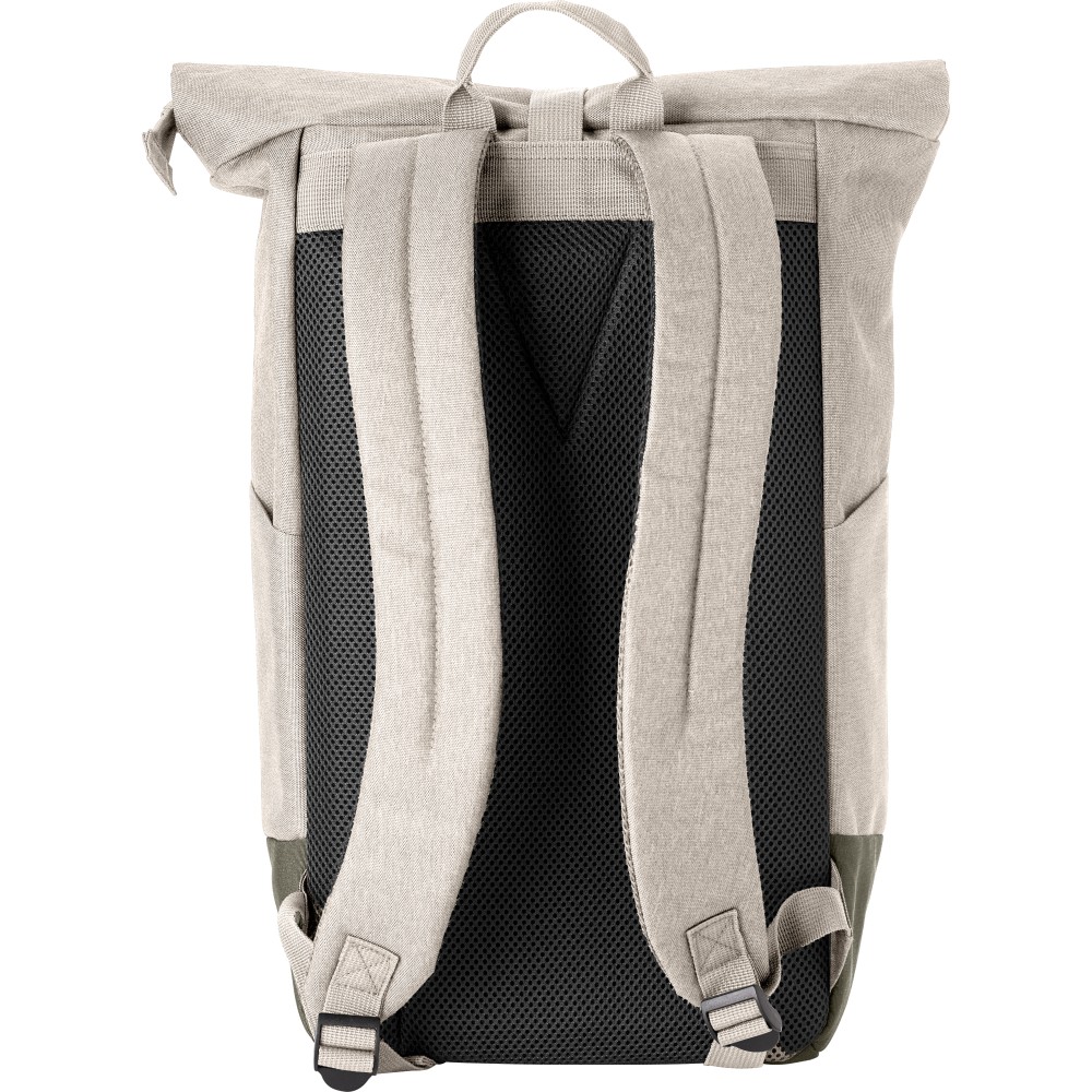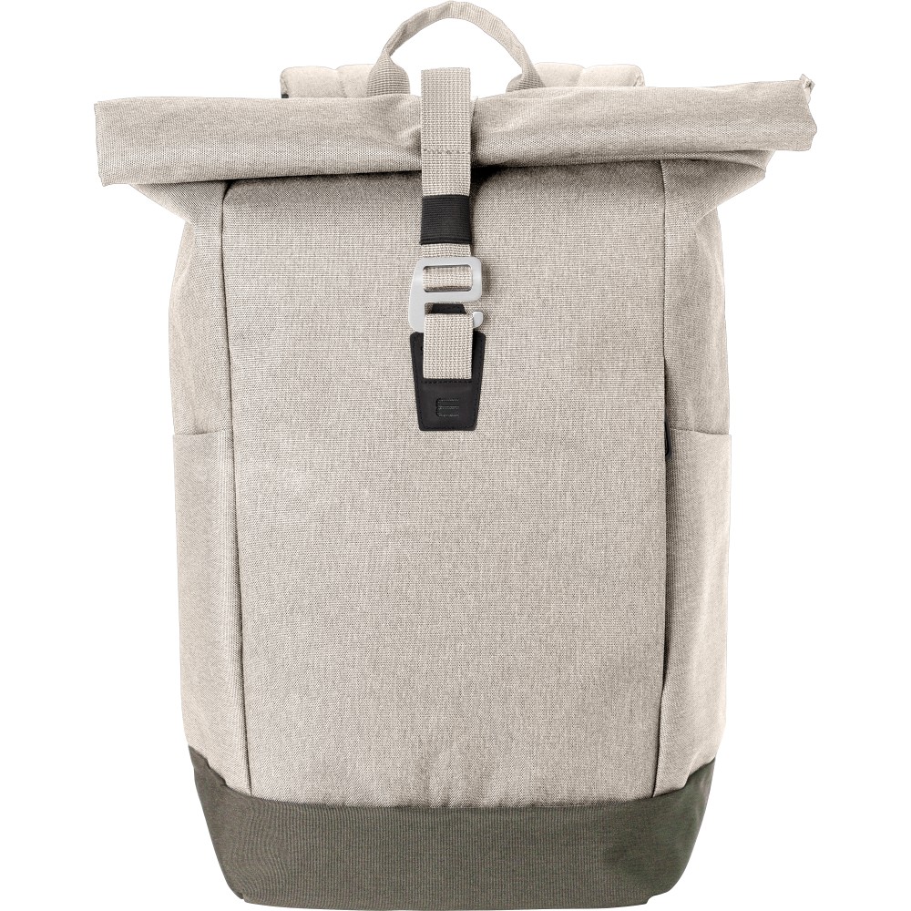 Poliészter (600D) rolltop hátizsák. Egy nagy cipzáras rekesz két csúszózsebbel és egy laptop rekesszel. Cipzáras rekesz elöl. Párnázott hátoldal és pántok. Fémhorog a záráshoz. Emblémázás: Szitanyomás