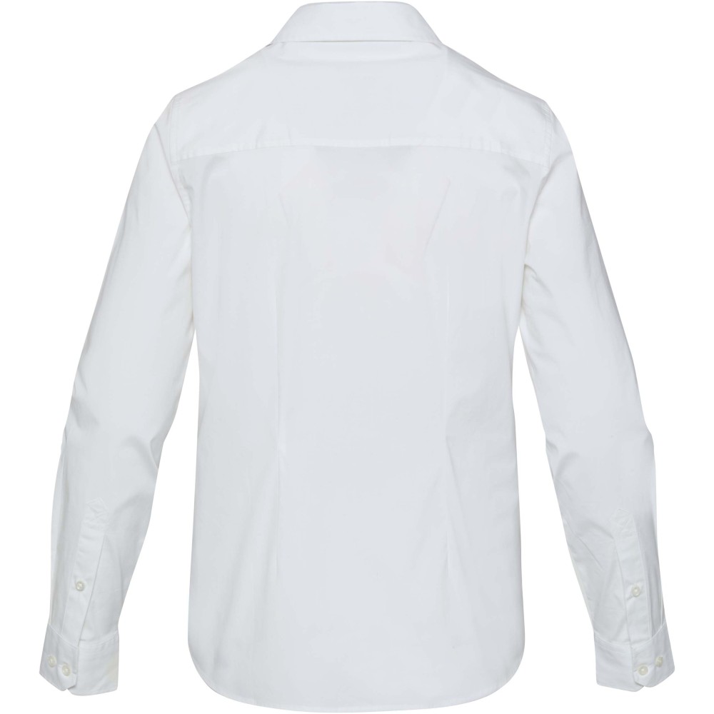 A Carnelian hosszúujjú női puplin ing letisztult stílust és rugalmas, nőies szabást kínál. Prémium, BCI minősítésű, rugalmas pamutból készült, finoman szőtt, 30 denieres, kétrétegű, csavart fonalszerkezete puha, kiváló minőségű kidolgozást és tartós formát biztosít. Normál szabással, elöl és hátul formázó bevarrással tervezték, így előnyös sziluettet és egész napos kényelmet kínál. Időtlen, normál gallérral készült, a Carnelian ing ötvözi az eleganciát és a teljesítményt, így kifinomult, alapvető darab a mindennapi viselethez. 3% elasztánból és 97% BCI pamutból készült puplin, 133 g/m2. Emblémázás: Hímzés