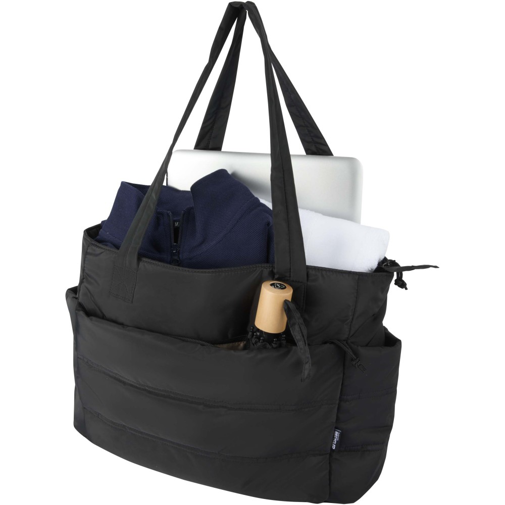 A Puffer 15,6" laptop válltáska GRS tanúsítvánnyal rendelkező újrahasznosított alapanyagokat ötvöz letisztult, modern megjelenéssel. A 18 literes űrtartalom mellett párnázott laptoprekesszel rendelkezik, amely legfeljebb 15,6 colos eszközök biztonságos tárolására alkalmas, valamint több belső és külső zsebbel, amelyekben kényelmesen elférnek jegyzetfüzetek, töltők, kulacs és egyéb mindennapi kiegészítők. A hosszú, párnázott fülek és a bőröndre rögzíthető pánt komfortos hordozást biztosítanak, míg a puffer stílusú párnázás egyszerre gondoskodik a védelemről és az elegáns megjelenésről. Könnyű és vízlepergető kialakításának köszönhetően ideális választás úton lévő szakemberek és diákok számára.