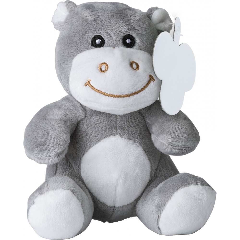 Plüss víziló hímzett szemekkel, fülében emblémázható címkével. Emblémázás: Tamponnyomás