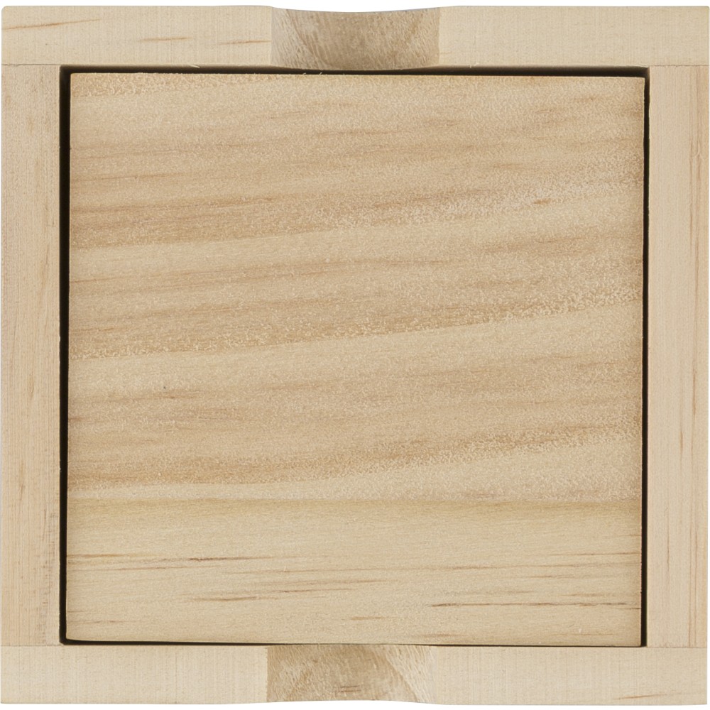 Fenyőfából készült mini Sudoku játék, felnyitható játéktáblával és belső tárolórekesszel 16 darab játéktüske számára. Kompakt kivitel, útközbeni használatra alkalmas. Darabonként barna kartondobozba csomagolva.