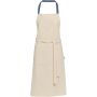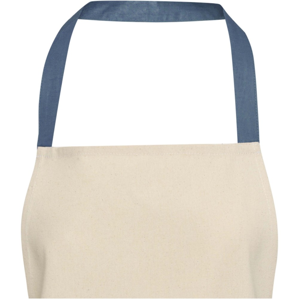 A Nia kötény 100% GRS tanúsítvánnyal rendelkező, 200 g/m2 újrahasznosított pamutból készült. Természetes pamut színe és kontrasztos nyakkpántja elegánsan védi ruhádat főzés közben. Két egymás melletti zsebbel rendelkezik, összesen 45 x 20 cm-es mérettel, és 1 méter hosszú pánttal rögzíthető hátul. Emblémázás: Hímzés, Szitanyomás