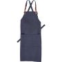 Farmerkötény vállpántokkal és két elülső zsebbel. A farmer 65% poliészterből és 35% pamutból készült. Ez a kötény nem rendelkezik nyakpánttal, csak vállpántokkal. A farmer színtartóssága 2-3 szint. Egyenként barna karton ajándékdobozba csomagolva. Anyaga: 280 g/m2. Emblémázás: Hímzés, Szitanyomás