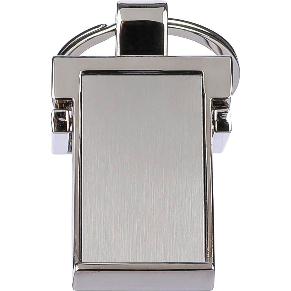 Kulcstartó fém karikával, amely telefonállványként is funkcionál. Egyenként barna papírzacskóba csomagolva. Anyaga: cinkötvözet. Emblémázás: Gravírozás