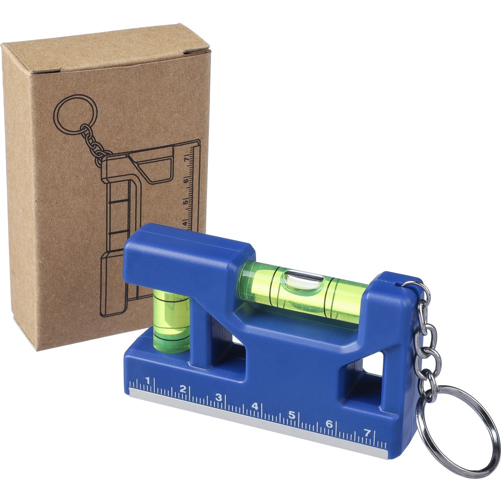 Kulcstartó vízmértékkel, újrahasznosított ABS, kobaltkék