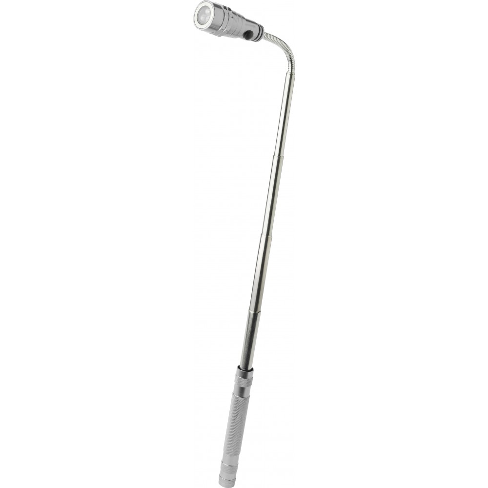 3 LED-es alumínium lámpa mágnessel, teleszkópos fogóval. Fogóján lapos kialakítás biztosítja a nagyobb emblémázási felületet. Emblémázás: Gravírozás, Tamponnyomás