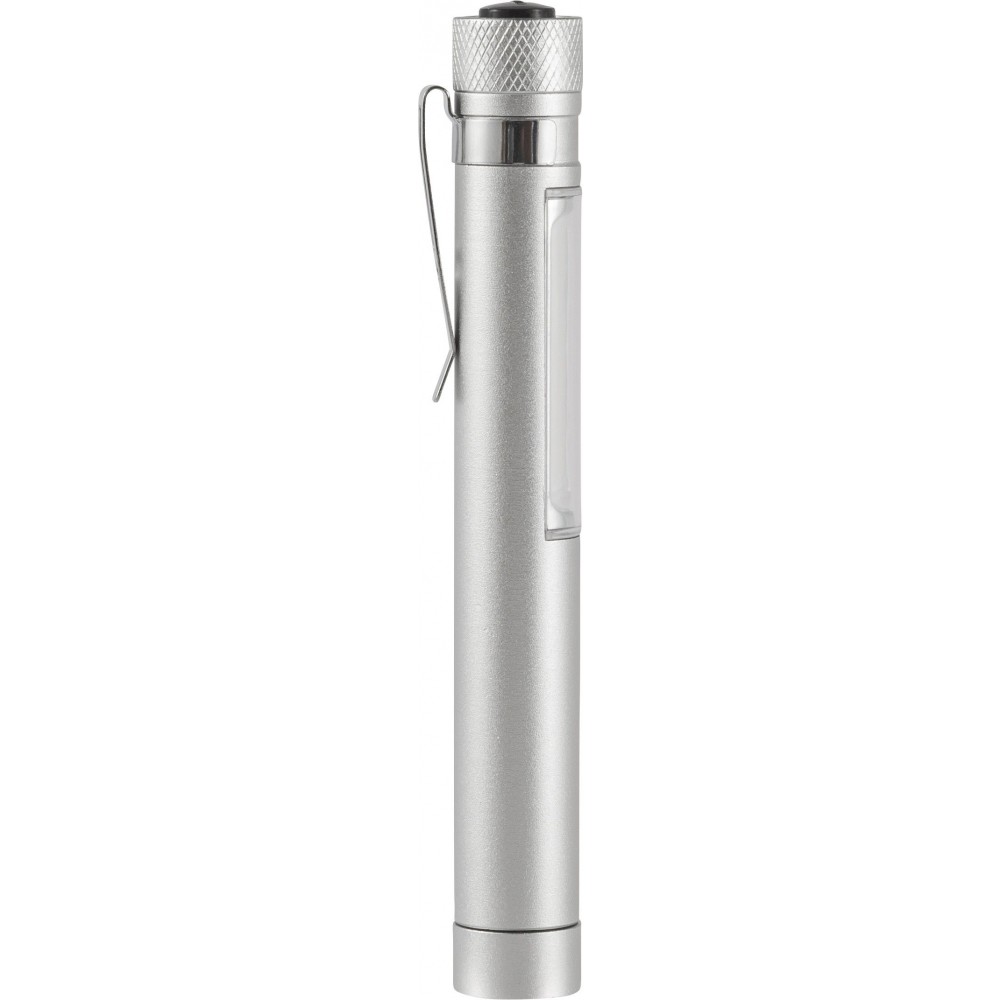 COB zseblámpa (50 lumen) mágnessel az alján és fém zsebklipsszel. Tartalmaz elemeket. Egyenként fehér dobozba csomagolva. Anyaga: alumínium. Emblémázás: Gravírozás, Tamponnyomás