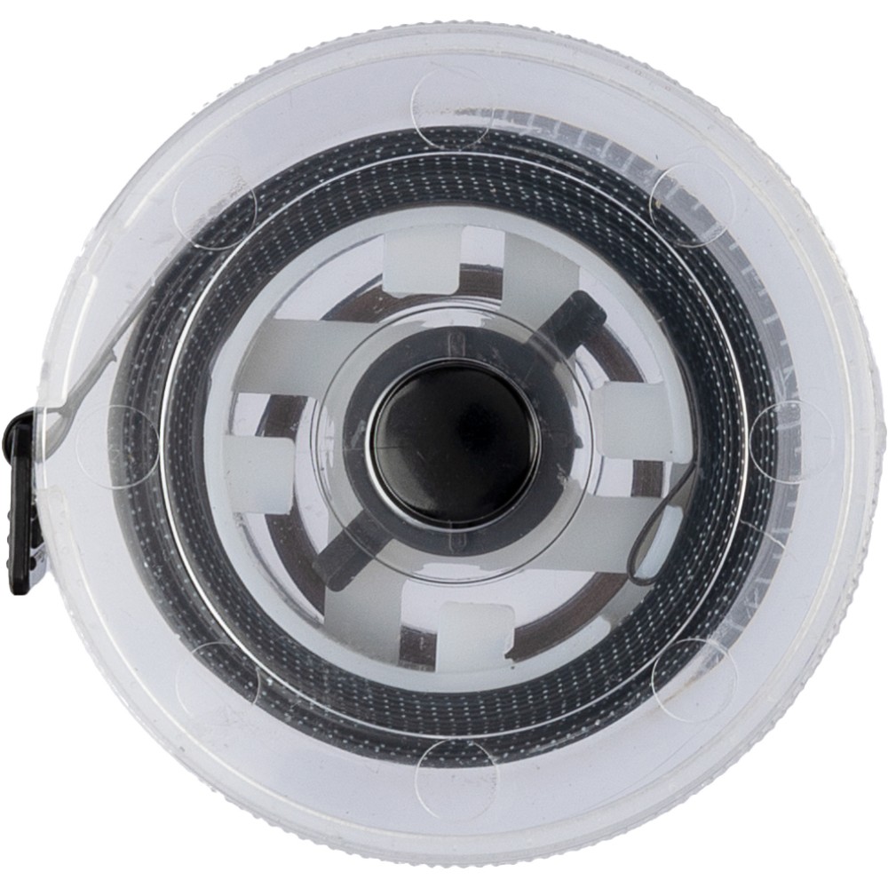 Mérőszalag átlátszó házzal és színes mérőszalaggal. Nyomógombbal és reteszelő mechanizmussal rendelkezik. A nyomtatási terület a hátoldal sík felületén található. 1,5 méter. Emblémázás: Tamponnyomás