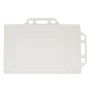 Kemény kártyatartó. Horizontálisan és vertikálisan is elhelyezhető benne a kártya a két oldalán található akasztók miatt. Csak nyakpánttal együtt rendelhető. A tokba max. 9 x 6 cm-es kártya rakható. Emblémázás: Tamponnyomás, UV nyomtatás,