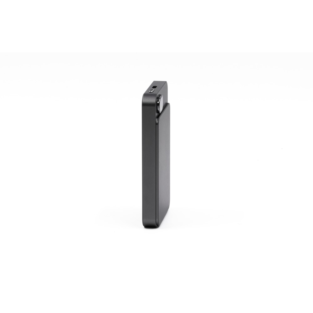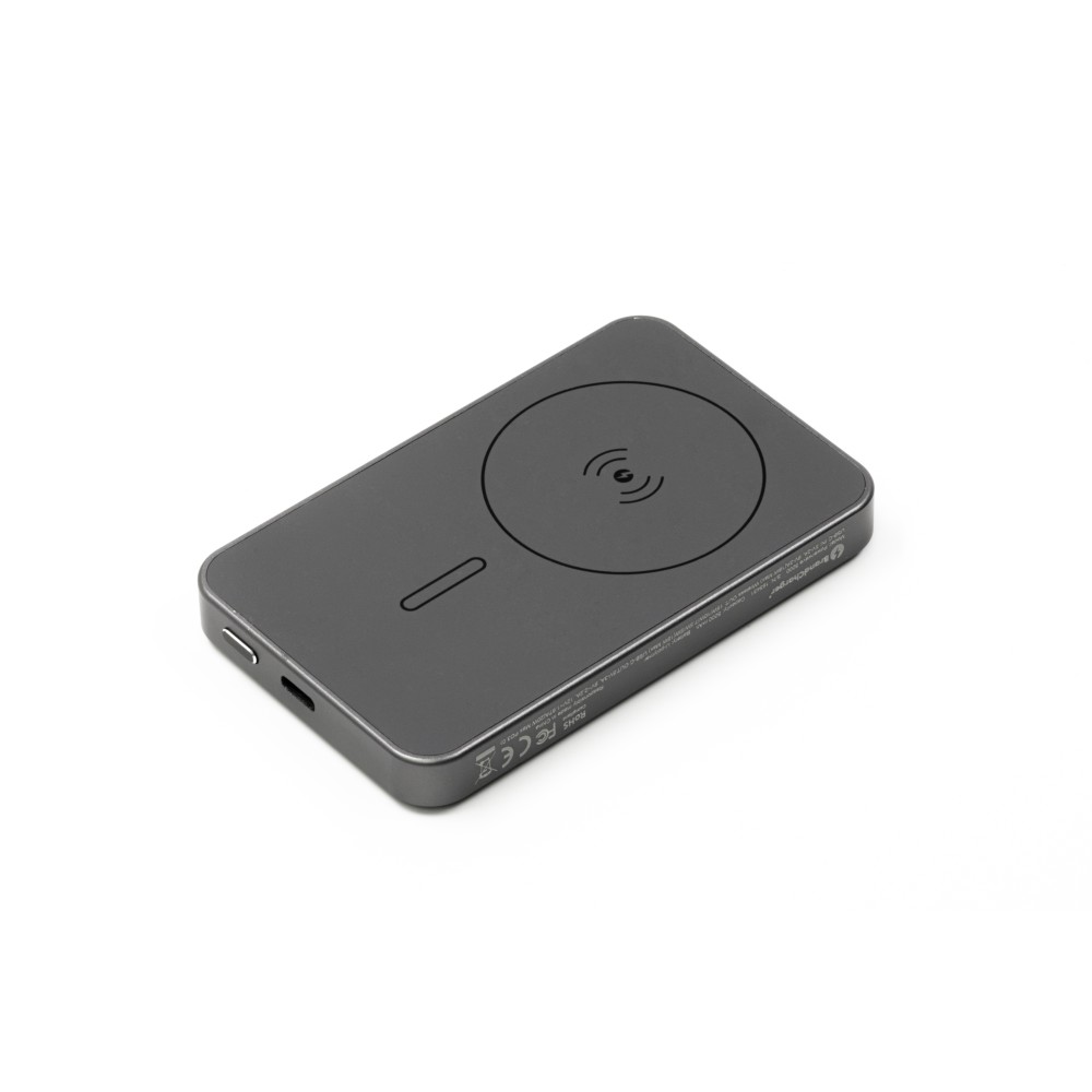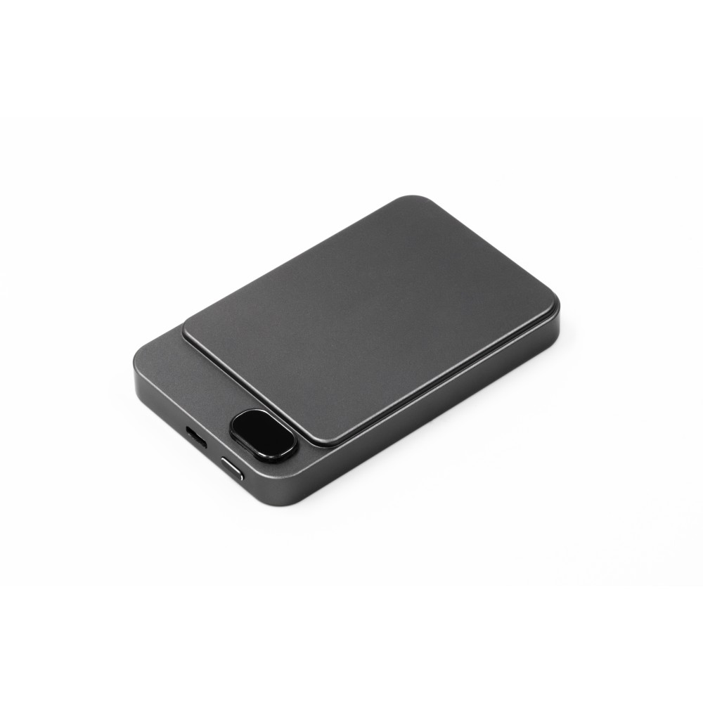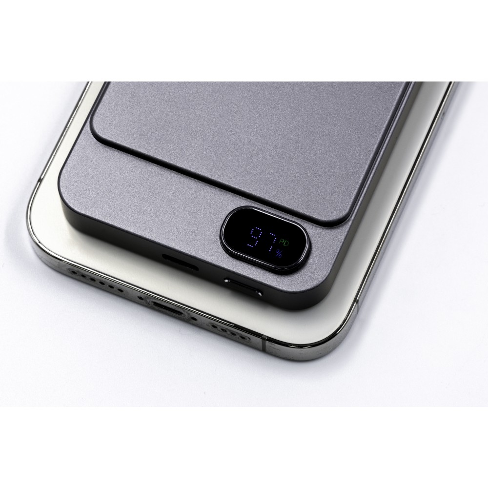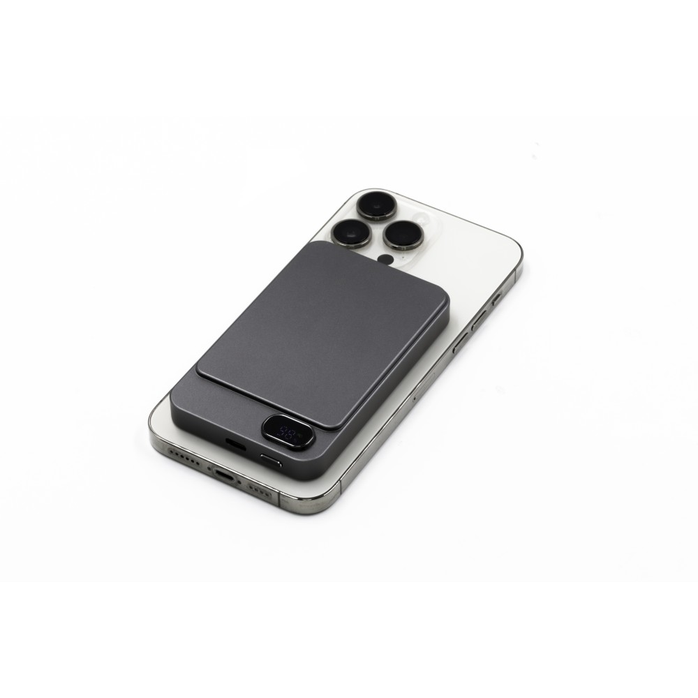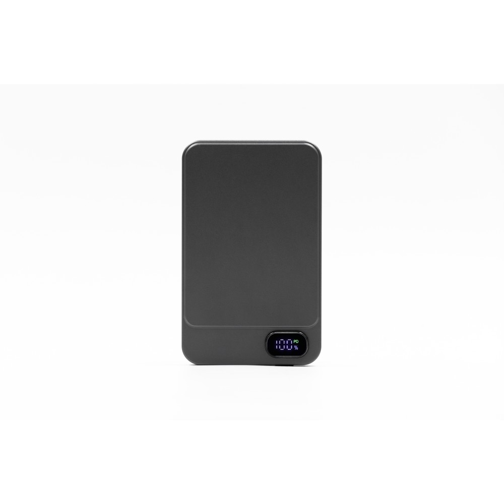 A Powerwave 5000 mAh-s powerbank vékony, alumínium unibody kialakítású, így könnyen elfér bármelyik zsebben. 5000 mAh kapacitással rendelkezik, és támogatja a 15 W-os mágneses vezeték nélküli töltést (MagSafe, Qi1 és Qi2) az egyszerű, kábel nélküli töltés érdekében. Emellett tartalmaz egy 20 W-os (PD 3.0) USB-C portot is, hogy szükség szerint tölthesse a laptopokat vagy más eszközöket. Az LCD kijelzőn látható az akkumulátor töltöttségi szintje és töltési állapota, míg az intelligens chip védelmet nyújt a túláram, a túltöltés, a túlmelegedés és a rövidzárlat ellen. Mágneses rögzítéssel tervezték a gyors és biztonságos rögzítéshez. Emblémázás: Gravírozás