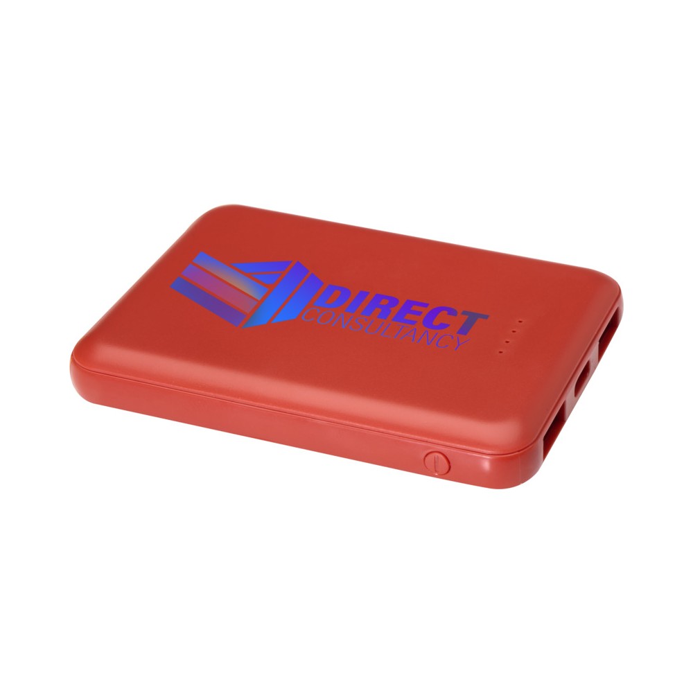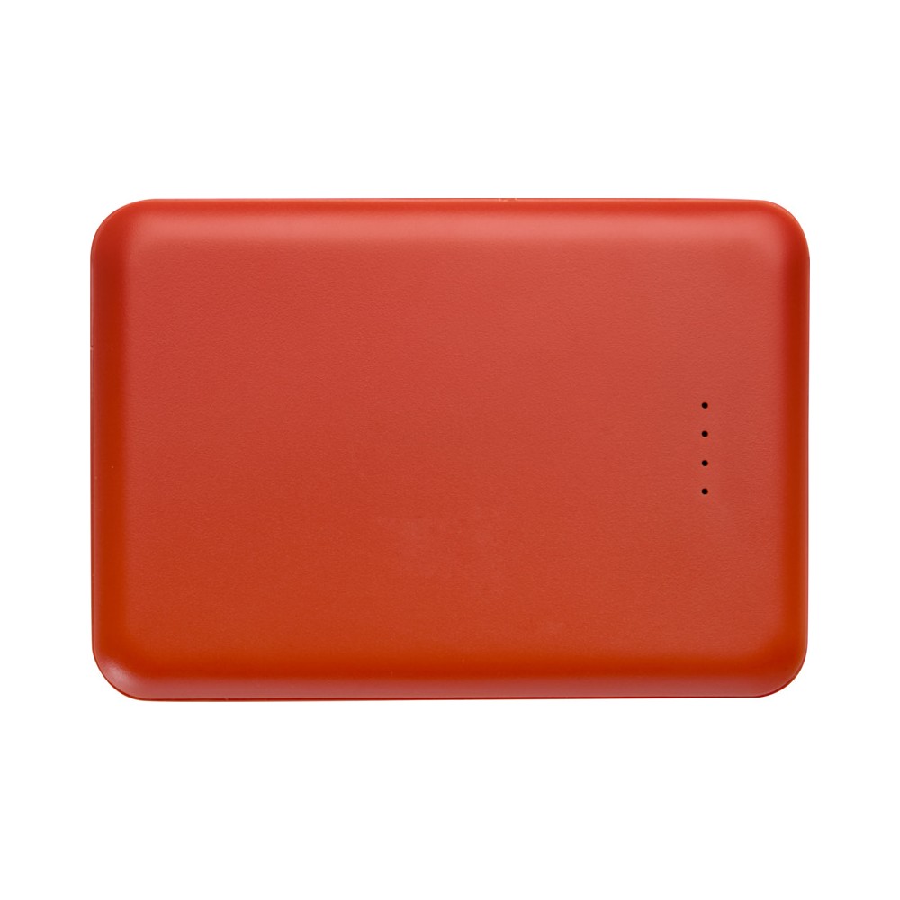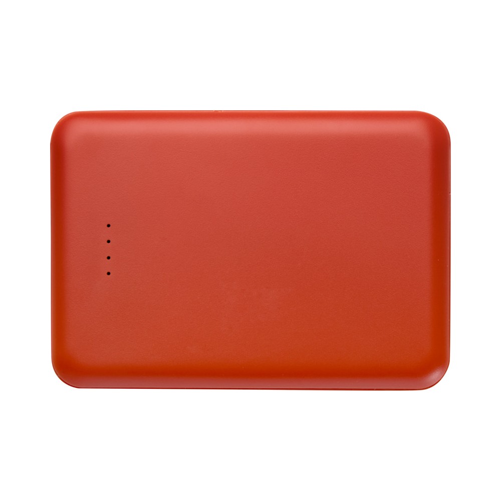 Karcsú és elegáns kialakítású powerbank, Type-C bemeneti/kimeneti porttal és 2 db USB-A porttal, amelyek lehetővé teszik három eszköz egyidejű töltését. A powerbank 5000 mAh kapacitású lítium-polimer akkumulátorral rendelkezik, amely max. 10W teljesítményt biztosít. A powerbank 23%-ban RCS tanúsítvánnyal rendelkező újrahasznosított műanyagból készült. TPE Type-C - USB-A töltőkábellel szállítjuk. Emblémázás: Tamponnyomás