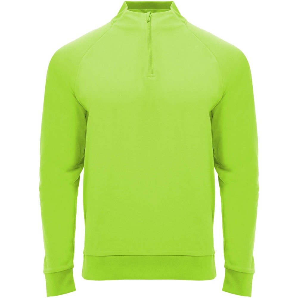 Roly Epiro hosszú ujjú negyed cipzáros uniszex pulóver, fluor green