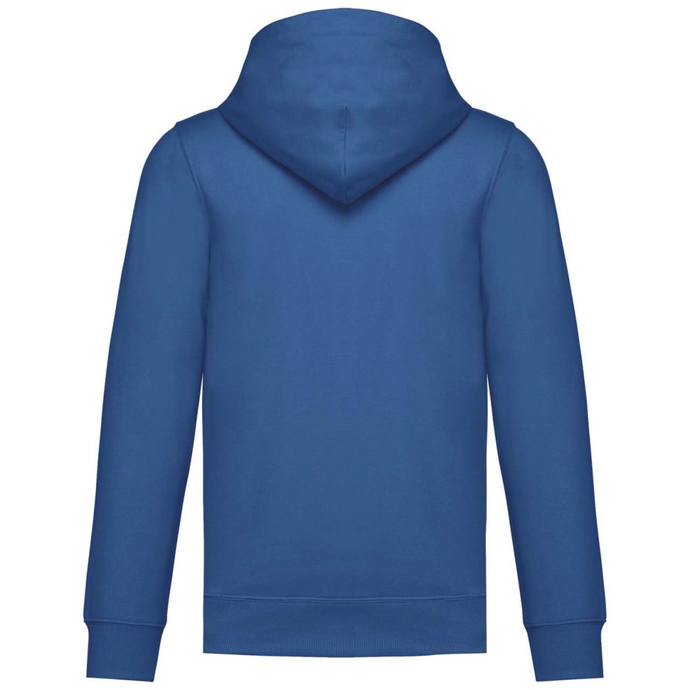 50% gyűrűs fonású pamut / 50% újrahasznosított poliészter, fésült pamut. Egyenes szabású, vágott és varrott. 1x1 bordás kötés a nyakkivágás, a mandzsetta és az alsó szegély jobb megjelenése érdekében. Kenguruzseb. Policotton dzsörzé bélésű kapucni lapos húzózsinórral. Színben illeszkedő dzsörzé szalagos belső a nyakkivágásnál. Csak méretcímke márkajelzés nélkül. Emblémázás: Hímzés, Szitanyomás