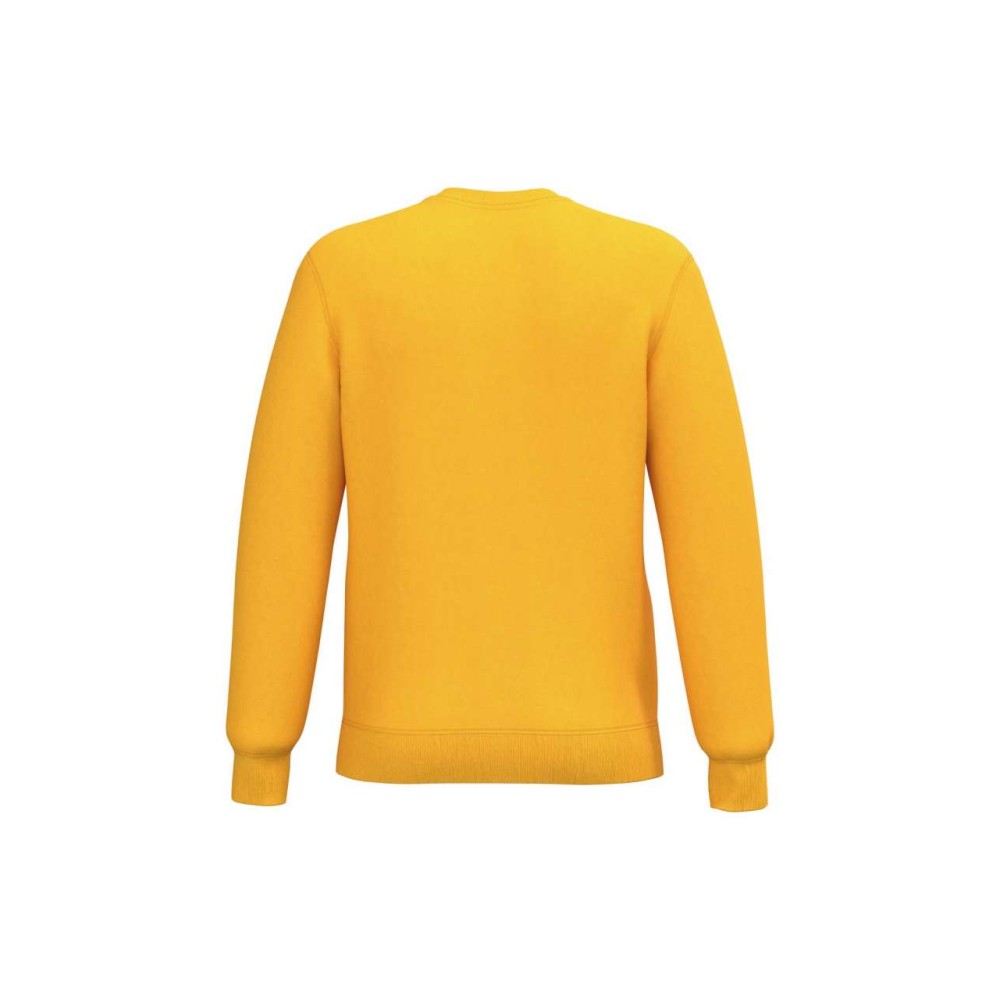 280 g/m2, 50% gyűrött pamut/50% újrahasznosított poliészter. Csiszolt polár anyag, egyenes szabás, környakas fazon. Vágott és varrott, 1x1 bordás, csőszerű összeállítás a nyakvonal, a mandzsetták és az alsó szegély jobb kiviteléért. Tónusban megegyező jersey szalag a nyakvonal belsejében. Nincs márkajelzés a nyakvonalon, csak méretcímke a könnyű dekorálás érdekében.