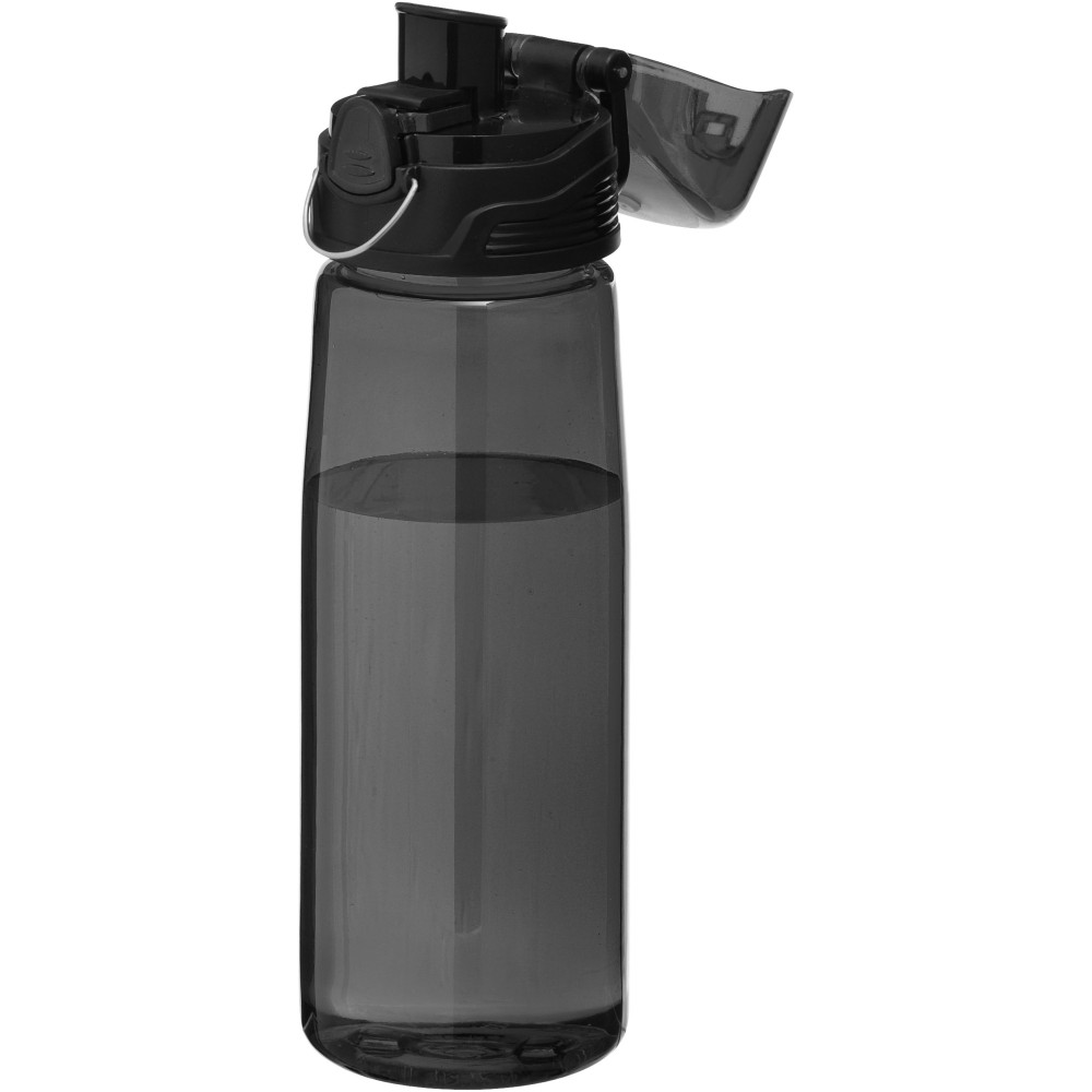 Nagy melegben a könnyű Capri sportpalack életmentő lehet. A palacknak felnyitható ivófedele van kifolyóval, így védve és tisztán tartja. A nyomógomb megkönnyíti a nyitást. Az átlátszó palack szilárd folt- és szagmentes Eastman Tritan anyagból készült, így tartós és BPA-mentes. Szivárgásmentes. Szénsavas italokkal nem használható. Mosogatógépben nem mosható és mikrohullámú sütőben történő melegítésre nem alkalmas. Űrtartalom: 700 ml. Emblémázás: Körszita, Tamponnyomás