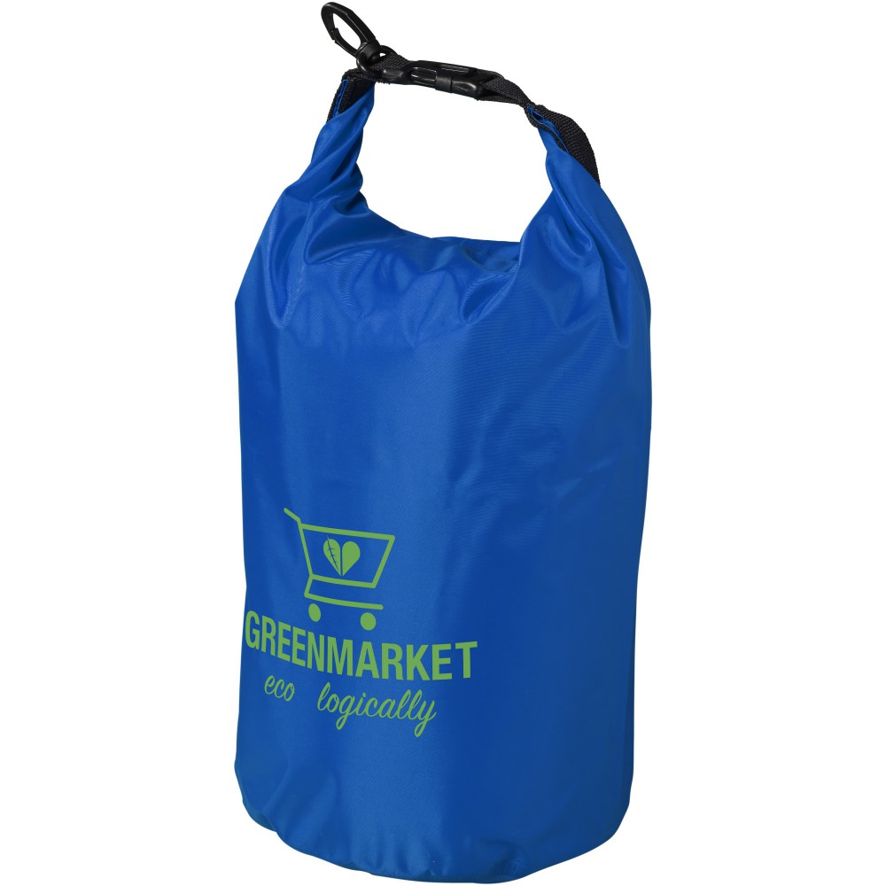 Vízálló táska, roll-top műanyag csatos záródással, hogy értékei biztonságban legyenek, és szárazon maradjanak. 190T polyester taft PVC hátsó résszel. Űrtartalom: 5 liter. Emblémázás: Szitanyomás