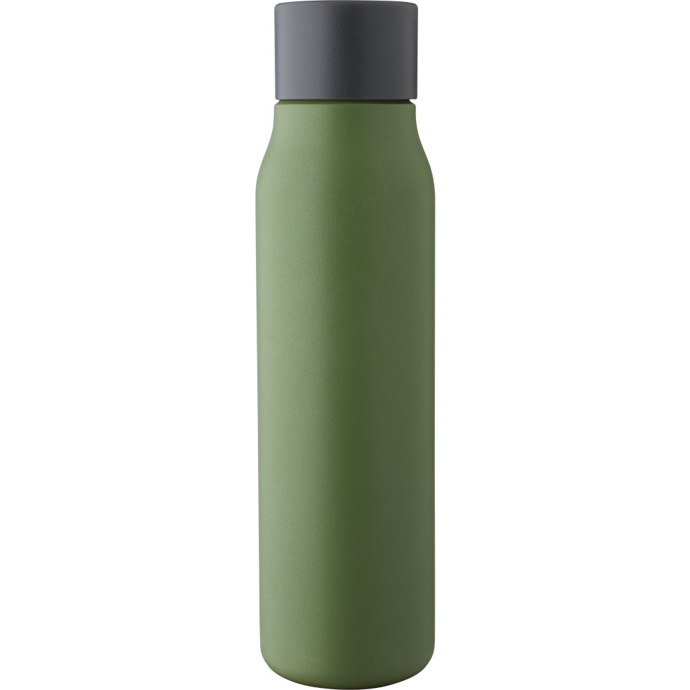 Újrahasznosított rozsdamentes acélból készült palack (600 ml-es). A belső anyaga 304-es, a külső anyaga pedig 201-es rozsdamentes acél. Szivárgásmentes PP kupakkal és alumínium karabinerrel. A karabiner mászáshoz nem alkalmas. A palack a benne tárolt italt 6 órán át melegen vagy 9 órán át hidegen tartja. Az újrahasznosított anyagra utaló logó a palackra van gravírozva. Csomagolása barna papírdoboz. Emblémázás: Gravírozás, Körszita, Tamponnyomás