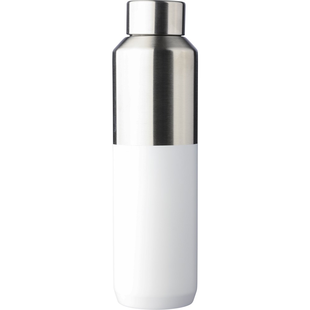 Újrahasznosított rozsdamentes acél palack, 600 ml. Duplafalú, vákuumszigetelt, a belső 304-es, a külső pedig 201-es rozsdamentes acélból készült. Kupakja PP, 201-es rozsdamentes acél külsővel. Elején gravírozott újrahasznosított logó található. Csomagolása barna papírdoboz. Emblémázás: Gravírozás, Körszita