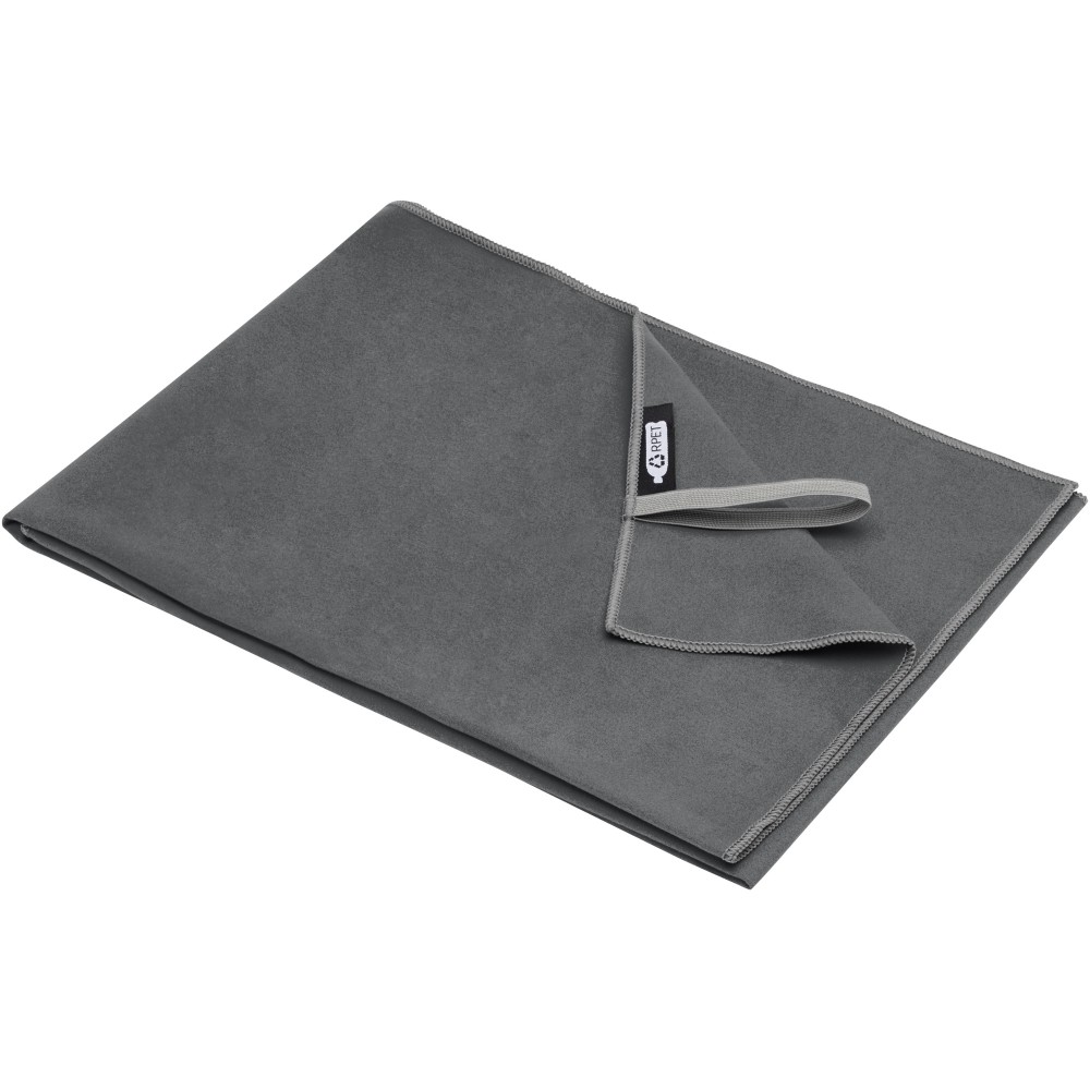 A Pieter sporttörülköző nagyon jó nedvszívó, könnyű, gyorsan szárad, az anyaga pedig tartós és rendkívül puha. Ha a törölközőt összehajtjuk és gumiszalaggal rögzítjük, kis méretűre csomagolható, így alkalmas arra, hogy magunkkal vigyük az edzőterembe, uszodába, vagy ha hátizsákos túrára, esetleg kempingezésre megyünk. A törülköző 50 x 100 cm méretű, 90% GRS újrahasznosított poliészterből és 10% nejlonból készült, és 40 °C-on mosható mosógépben. Újrahasznosított PET műanyagból készült tároló tasakkal (17 x 13 cm) szállítjuk. Emblémázás: Hímzés, Szitanyomás