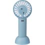 Elektromos kézi ventilátor 600 mAh-s akkumulátorral és C-típusú csatlakozóval és a töltéshez szükséges töltőkábellel. A függőleges használathoz tartozék állvánnyal rendelkezik, de anélkül is használható utazás közben. 3 sebességfokozat. Anyaga ABS. Csomagolása barna papírdoboz. Emblémázás: Tamponnyomás