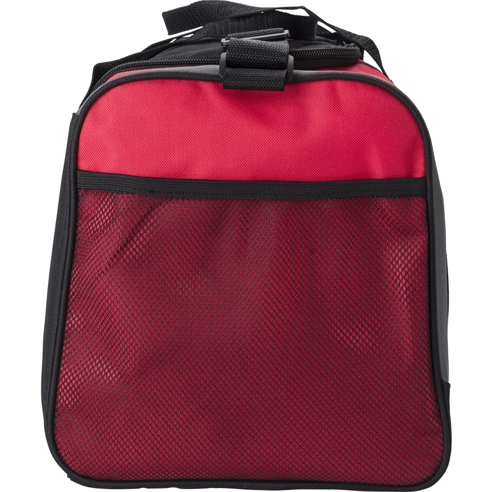 Sporttáska rövid fogantyúval és állítható vállpánttal. Egy nagy rekesz cipzárral, egy hálós zseb az oldalán, 3 elülső zseb. Megerősített alj. Poliészter 600D. Emblémázás: Szitanyomás