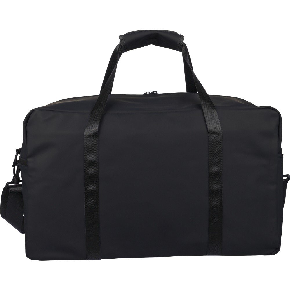 Újrahasznosított PU anyagból készült sporttáska 35 literes űrtartalommal, 210D újrahasznosított poliészter béléssel. 108 cm hosszúságú és 2,5 cm szélességű fogantyúval rendelkezik tépőzáras rögzítéssel, valamint 130 cm hosszúságú és 3,9 cm szélességű állítható vállpánttal. Elülső cipzáras zsebbel és nagy fő rekesszel készül. A belső címkén újrahasznosított alapanyagra utaló logó található. Emblémázás: Szitanyomás