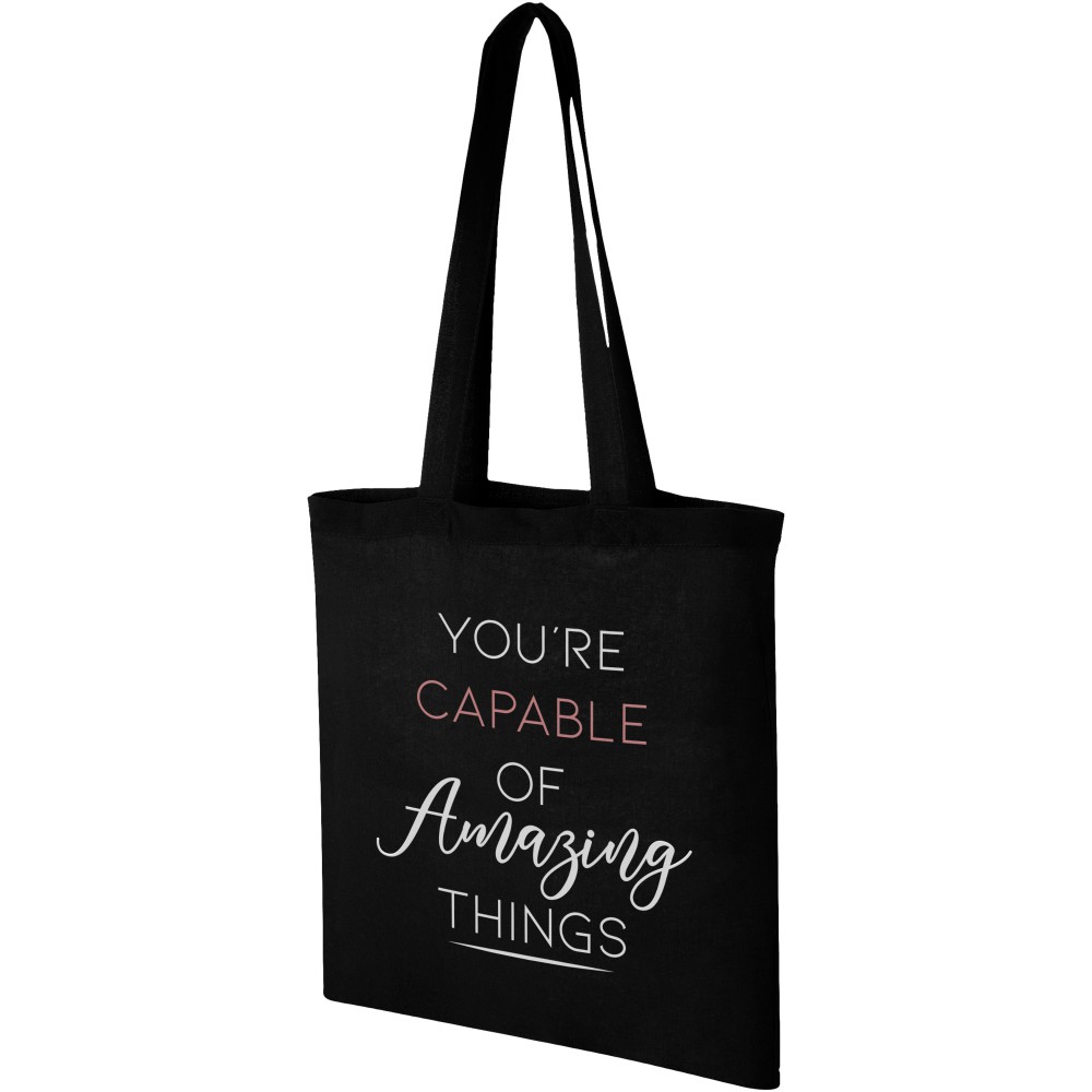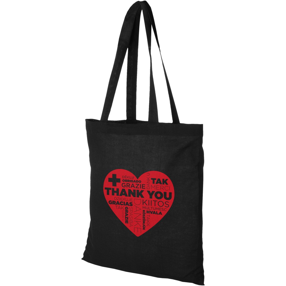 A Carolina táska könnyű és pénztárcabarát, így kiválóan alkalmas reklámhordozó rendezvényeken, konferenciákon vagy kiállításokon. A nagy fő rekesz elegendő helyet biztosít a könnyű tárgyak tárolására, a 30 cm-es vállpántok pedig megkönnyítik a táska szállítását. Fülek magassága 30 cm. 100 g/m2 pamut. Emblémázás: Szitanyomás