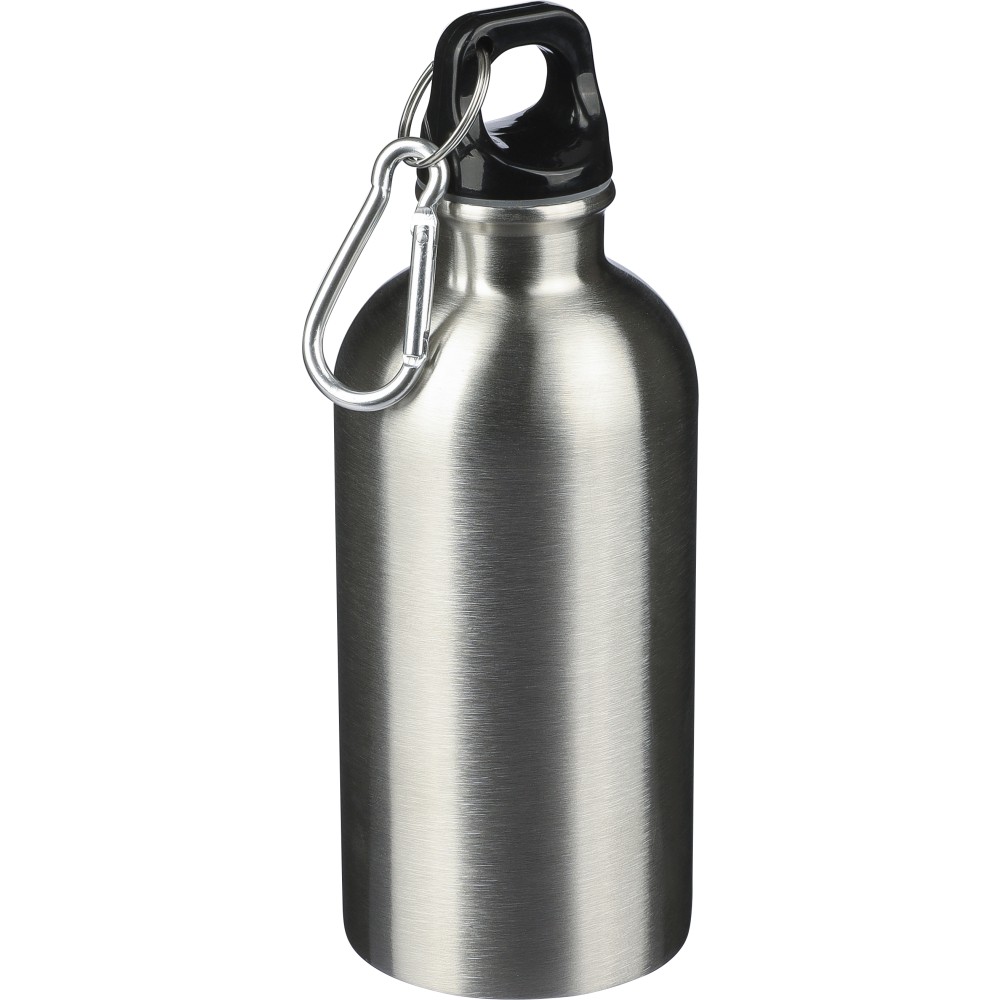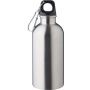 Újrahasznosított rozsdamentes acélból készült 400 ml-es szimplafalú kulacs PP kupakkal és alumínium karabinerrel. Az újrahasznosított anyagra utaló logó a palackra van gravírozva. Mosogatógépben nem tisztítható. Emblémázás: Bögredekor, Gravírozás