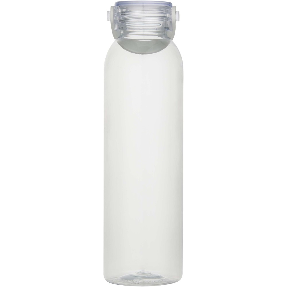RCS tanúsítvánnyal rendelkező RPET-ből készült kulacs, praktikus szilikon hordozófüllel. Megfelel az EFSA által jóváhagyott PET-újrahasznosítási eljárásnak. Űrtartalom: 630 ml. Emblémázás: Körszita
